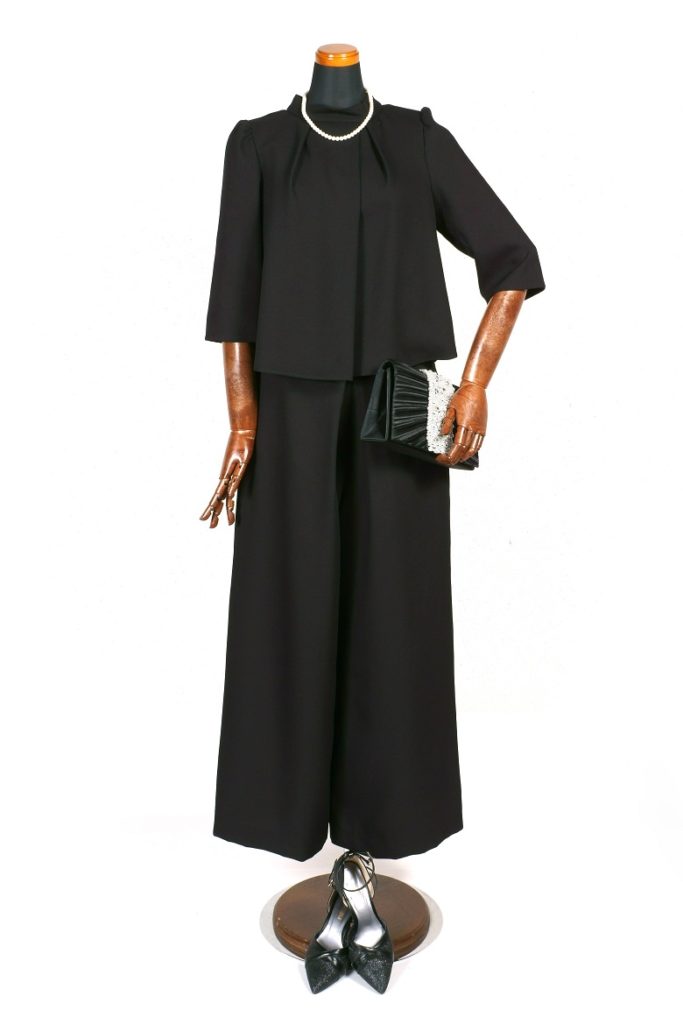 ブラックカラーのパンツスタイルは、スタイリッシュにかっこよく着こなしたいお客様にお勧めの一着。