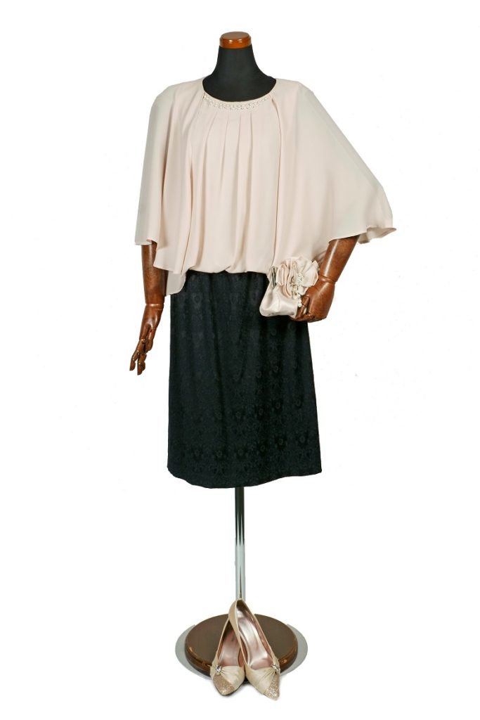バイカラーのフォーマルドレスでより華やかな印象に。胸元のドレープが軽やかでお洒落な着こなしに。ご結婚式のご参列にお勧めの1着です。