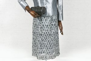 光沢感が美しいジャガード生地を使用したジャケットは、高級感あふれる上品な一着。