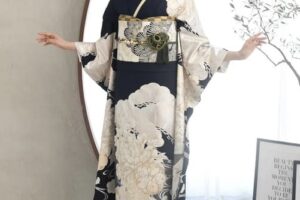 クリームとベージュのニュアンスカラーは現在トレンドのくすみ系振袖。差し色で描かれた葉のワインが大人っぽく女性らしい印象を与えます。帯、小物もベージュ系でコーディネイトすると、今一番人気のワントーンコーデの出来上がり!