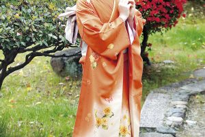 千總の伝統技法を活かして染め上げられた花々がモダンな印象を与えてくれます。清々しい地色は二十歳ならでは。