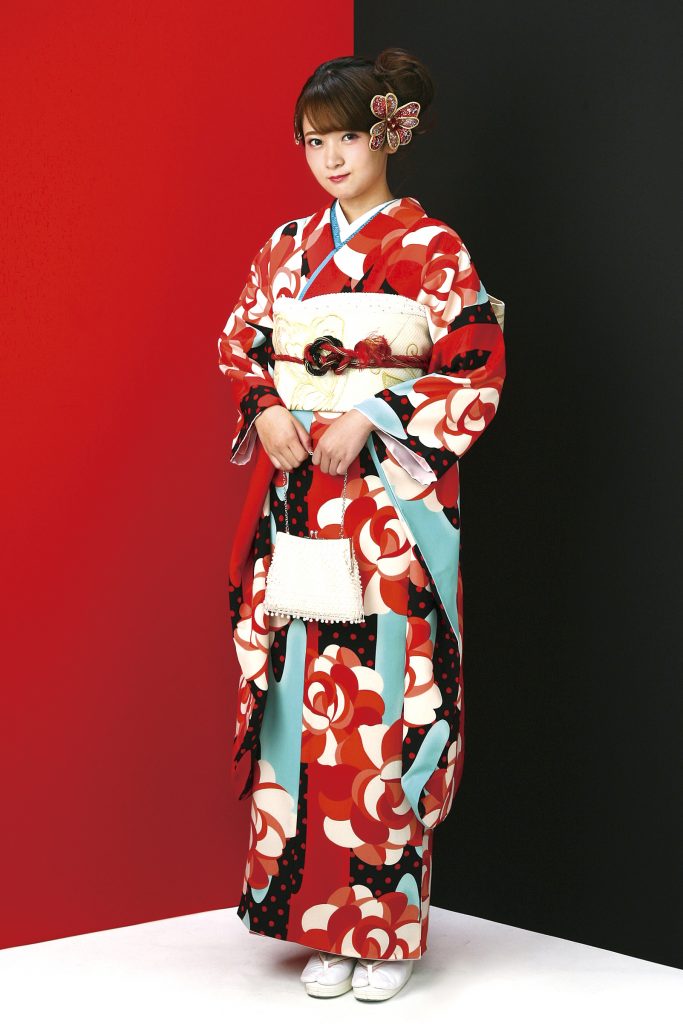 「みんなと一緒じゃ嫌!」自分だけの世界を大事にしたいお嬢様にぜひ着ていただきたい、レトロポップなお振袖です。