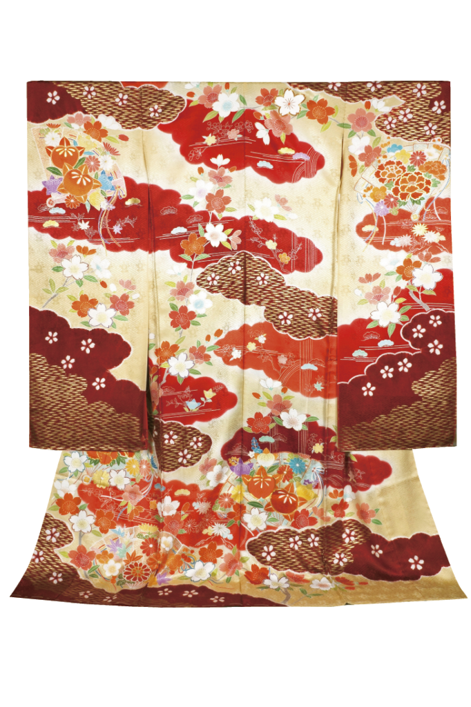 【千總 絞り檜扇桜御所解】 [ちそう しぼりひおうぎさくらごしょどき]