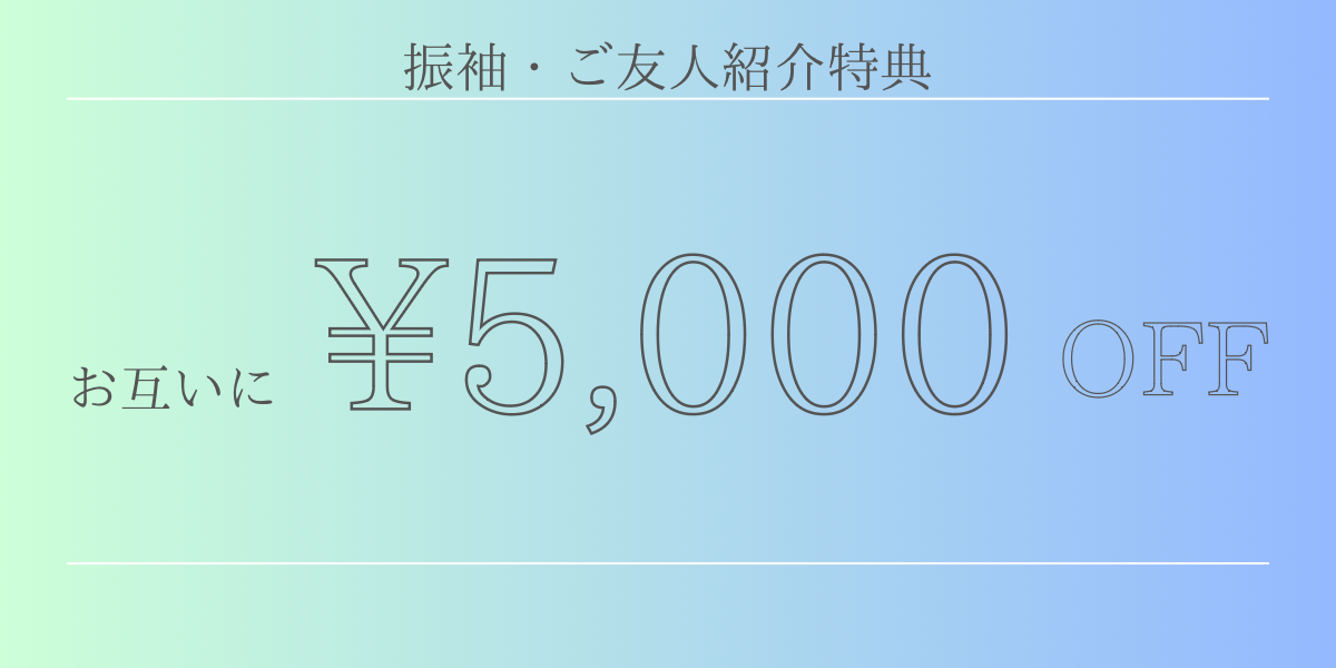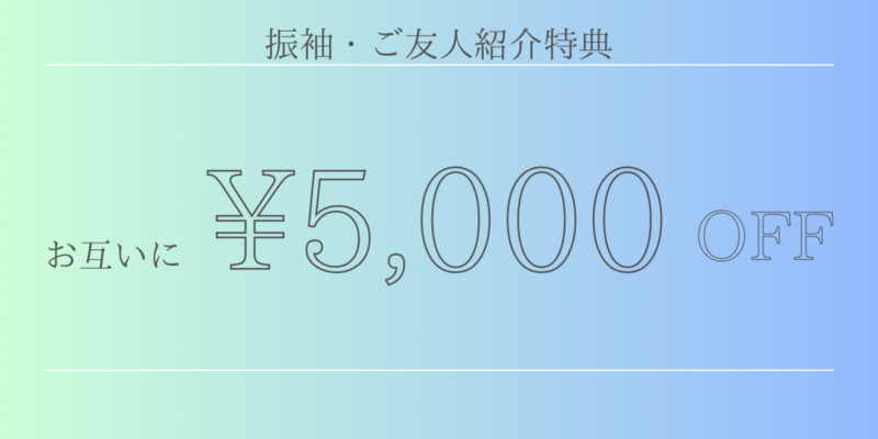 紹介したお客様は何名様紹介しても、1名様に付き¥5,000キャッシュバック!