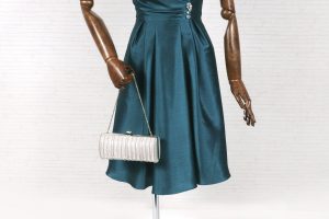 明るいグリーンのプリーツスカートが爽やかな印象。アクセントに使ったゴールドリボンが華やかさを添えます。パーティドレスは5号から17号までご用意しています。バッグや靴、アクセサリーも豊富に取り揃えております。