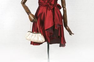 マジョリカブルーのドレスは、ウエストのビジューが華やかさのポイント!シルバーの小物でスタイリッシュにコーディネート。パーティドレスは5号から17号までご用意しています。バッグや靴、アクセサリーも豊富に取り揃えております。